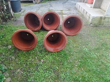 5 Vasi in terracotta, di cui 3 con diamemetro 44 cm, 2 con diametro 40 cm. I sottovasi sono in plastica. Il prezzo comprende l'intero kit.