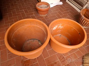 vendo due vasi per fiori in plastica con decoro leggero tipo greca. diametro 33 cm altezza 33 cm e 28 cm