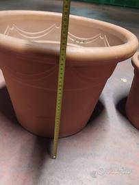 Due vasi in resina in ottime condizioni. il grande misura 50cm in altezza e 38cm di diametro, il piccolo, 40 cm di altezza e 28cm di diametro.