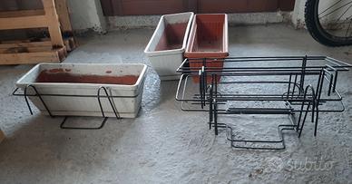 Vendo 3 vasi rettangolari e 5 portavasi in ferro, anche singolarmente, 3,50€ a vaso e 6€ il ferro, se comprate tutto 40€ trattabili