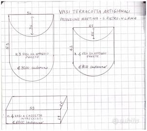 Vasi in terracotta artigianali ,da parete e a cassetta, salentini, prodotti da MARTINA a S. Pietro in Lama. Il prezzo e le misure sono specificati nella foto di descrizione