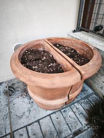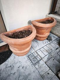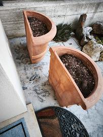 Coppia di vasi da parete in terracotta "Bitossi". Dimensioni:H 60 cm circa,Larg. 50 cm. Non spedisco perché fragili e ingombranti. Ritiro in zona Brescia ma,previo accordo,mi sposto anche provincie limitrofi (BG/MI/VR/MN).