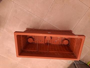 Vaso in plastica marrone per esterno con sottovaso. 100 cm x 42 cm. Usato ma in buone condizioni.