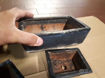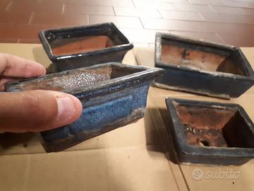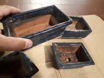 Vendo in blocco 4 piccoli vasi per Bonsai di misure diverse con un solo sottovaso. Tutti interi , nessuno è rotto o danneggiato .Tutti insieme a 20 euro.