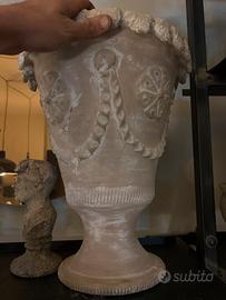 Questo vaso Liberty, a forma di calice, racconta storie di giardini antichi e mani sapienti. Realizzato in terracotta rustica non smaltata, conserva il fascino autentico del tempo passato.