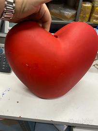 Vaso a cuore rosso per fiori o altro, in terracotta pitturata, usato per vetrine festa mamma /innamorati ecc. misura larg 33 alt 28 prof 17