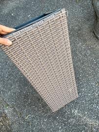 Il vaso è in plastica, ma effetto rattan ben fatto Misure Altezza 50cm Larghezza superiore 27cm Larghezza inferiore 18cm Profondità vaso 25cm