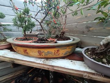 grande vaso bonsai misure 100 larghezza 70 profondità 16 altezza perfetto per chi vuole mettere in mostra un grande esemplare di bonsai vaso difficile da trovare costo nuovo intorno ai 3000 euro ha la sua età e per questo conserva un certo fascino di vissuto veramente molto bello trasporto a carico dell'acquirente non spedisco sarebbe impossibile