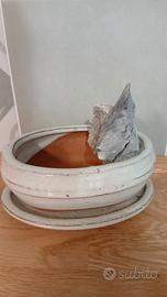 Vaso per Bonsai, nuovo con sassi e sottovaso
