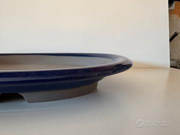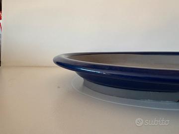 Bellissimo, introvabile, in condizioni eccellenti. Forma ovale, blu smaltato e grigio, due fori di drenaggio da 2 cm di diametro. Misure esterne: 31x24, altezza 4,5 cm Misure interne: 28x20, altezza 2 cm. Se scegliete Poste, in bocca al lupo. no sognatori.