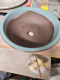 vaso per bonsai in gres smaltato misure interne 19cm. per 6.5 cm. altezza. esterne 22cm. per 7.5cm.
