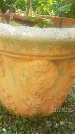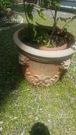 interessante vaso in cemento con bassorilievi (teste leone) e stemma altezza 60 - diametro 70 ritiro in loco contatti telefonici ore pasti