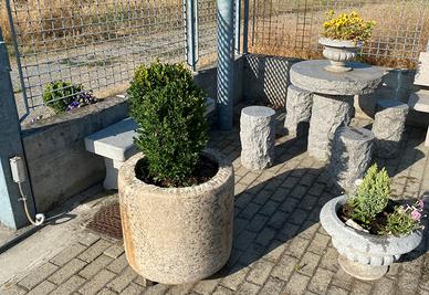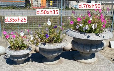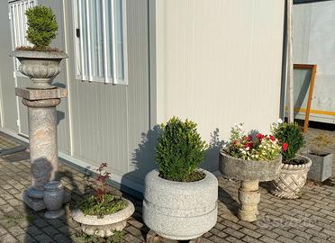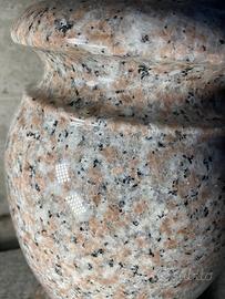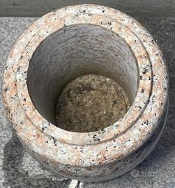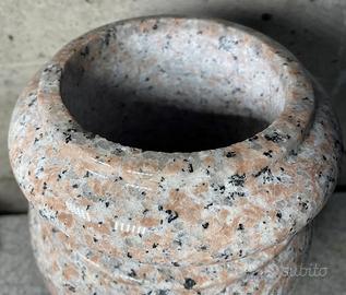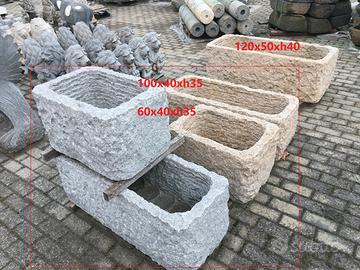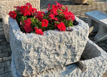 Scolpita da un blocco di granito, di colore rosa, NON è di cemento, graniglia o polvere di marmo, non soffrono il gelo, ideali per esterni.