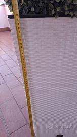 vaso in plastica altezza cm 75 larghezza 40x40 con sfera in bosso finto cm 50.