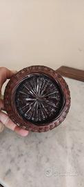 Antico contenitore con coperchio in vimini, primi del XX secolo, non marcato, realizzato da finissimo con intreccio di vimini, dipinto di rosso-marrone, buone condizioni, H tot. 25 cm. Privo di alcun segno di alcun difetto o segni di usura.