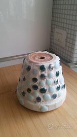 Come nuovo, vaso in terrocotta con decorazione in mosaico e perle di vetro. Oresenta foro di drenaggio.