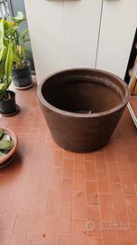 Vaso in resina da esterno,ottimo per piante o minipond. diametro 58cm,altezza 40cm. Usato un anno in balcone senza terra,solo con acqua,per progetto minipond. colore marrone ruggine scuro. necessita solo di una pulita.