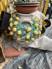 Bellissimo e raro (e pesante) Vaso da fiori in Ceramica (Firenze) decorato e dipinto a mano con limoni applicati misure: diam. 52cm x H. 70cm consegna a mano zona Arcella Pd