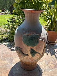 Vendo n. 3 Vasi da giardino terracotta con disegno in rilievo pesci e foglie