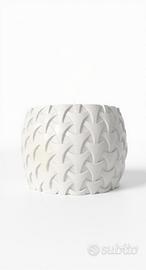 Vaso elegante realizzato con tecnologia di stampa 3D in materiale PLA ecologico e resistente. Il suo raffinato motivo geometrico e la finitura bianca opaca lo rendono perfetto per piante ornamentali o come complemento d’arredo dal tocco moderno. Con un diametro di 100mm, è ideale per ambienti minimalisti, contemporanei e per chi cerca un design unico e sostenibile.