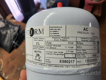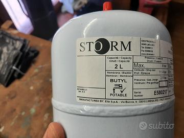 Vaso di espansione per acqua sanitaria ed impianti di riscaldamento marca STORM. Capacità 2 litri. precariato a 2,5 bar pressione massima 11,4 bar.