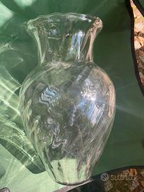 Vendo per Trasferimento vaso di fiori grande Bulboso, basi con scanalatura ottiche, vetro di cristallo e trasparente, chiaro otticamente in ottime condizioni