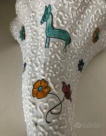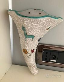 VASO FIORIERA APPLIQUE CERAMICA DI ROLLI DERUTA .