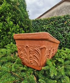 Vasi Fioriera, Vintage. Mareriale Terra Cotta Massiccia. Marchio Euganea Made in Italy. Forma Rettangolare con Decorazioni a rilievo. Lunghezza cm 47. Larghezza cm 20. Altezza cm 18. Condizioni Ottime. Disponibili 4 Fioriere.