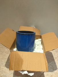 Vaso in ceramica blu da interno ed esterno. Misure diametro cm 20, altezza cm 18. Nuovo, errato acquisto.
