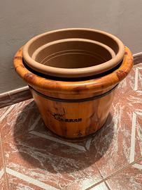 Portavaso in legno massello, diametro 42 cm altezza 33 cm.