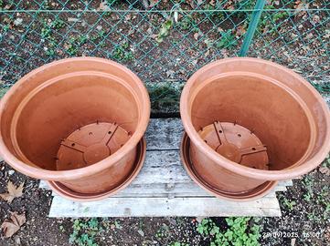 causa inutilizzo vendo 2 vasi con rispettivi sottovasi (diam. 50 cm, altezza 37 cm, fondo 35 cm). Prezzo del singolo vaso più sottovaso Euro 15. Non spedisco. Modalità visto e piaciuto. Non trattabile.