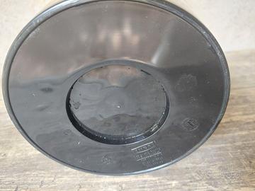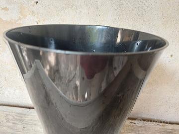 Vaso in polipropilene nero, non nuovo ma mai usato in quanto non presenta segni di usura. Dimensioni, diametro alla base cm 15, diametro superiore cm 24, altezza cm 35.