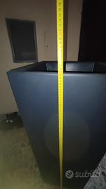 Vaso marca VECA in resina, colore grigio antracite, altezza 100cm. Sempre tenuto in casa, mai all'esterno è perfetto senza un graffio. Solo consegna a mano su Roma. Misure esterne: Altezza totale 100 Larghezza base 33 Larghezza esterna Top 45 Larghezza interna Top 37 Misure interne: Altezza da base vaso a Top 31 Larghezza base vaso 27