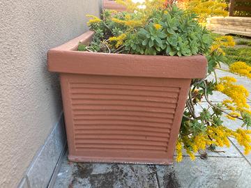 Vendo elegante vaso decorativo di grandi dimensioni, perfetto per giardino, terrazzo o ingresso. Realizzato in resina/plastica resistente con finitura effetto terracotta, un materiale leggero ma robusto, ideale per uso esterno: non si rompe facilmente come la terracotta, resiste bene agli agenti atmosferici ed è facile da spostare. Decorazioni in rilievo stile classico, che lo rendono adatto ad ambienti eleganti ma anche come piccolo orto sul balcone Caratteristiche: * Materiale: resina/plastica effetto terracotta * Colore: rosso/terracotta * Leggero e resistente * Decorazioni in rilievo * Ideale per esterno * Dimensioni cm. 100x37 h34 Consegna in zona Parma o provincia