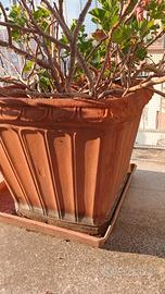 Vendo vaso in terracotta di lato 45cm, alto 40 cm. Il vaso presenta una pregiata lavorazione a rilievo. Come visibile in foto, il bordo superiore presenta i naturali segni dell'uso e del tempo, con una finitura leggermente consumata