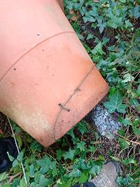 Grande vaso in terracotta da esterno 65cm diametro 60cm altezza. Il vaso presenta su un lato del fondo il difetto visibile in foto.