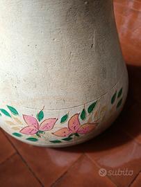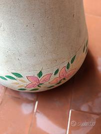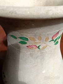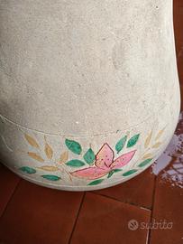 Vaso in terracotta dipinto . Ideale sia per interni che esterni. Acquistato negli anni 80. Altezza 29 cm , bocca diametro 19 cm, parte più panciuta 74 cm. Visto il peso solo consegna a mano.