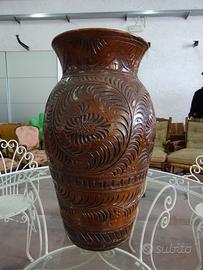 Vaso in terracotta con lavorazione molto bello color marrone,Vintage originale. Misure H 52 / apertura bocca 24 cm Per info Mostra numero (Alessandra)