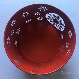 vendo vaso metallico decorazione fiocchi di neve, color rosso, mai usato e in perfetto stato.