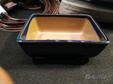 Vaso rettangolare smaltato blu, made in Japan.