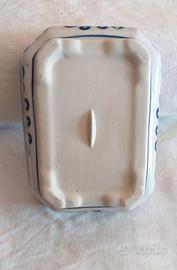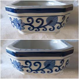 Vaso per bonsai o piantine grasse in ceramica con decorazioni smaltate . Usato ma ben conservato