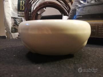 vaso per bonsai rotondo in terracotta smaltata colore avorio. Dimensioni : diametro esterno 12, interno 10,2. Altezza 5,4 cm esterno, 4,3 interno. Dimensioni Shohin. I miei vasi vengono spediti puliti e senza tracce di calcare