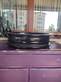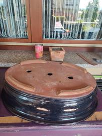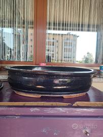Vaso da bonsai più sottovaso in terracotta smaltata color blu scuro misure 50x35 Come nuovo ci sono pochissimi segni di usura più che altro dovuti al calcare dell'acqua altrimenti il vaso è integro