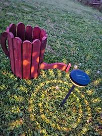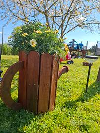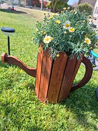Questo affascinante vaso di fiori in legno aggiunge un tocco rustico e originale a qualsiasi spazio esterno. Realizzato con listelli di legno robusti e trattati per resistere alle intemperie, questo vaso è perfetto per ospitare una varietà di piante e fiori. La finitura calda del legno si integra armoniosamente con il verde della vegetazione, creando un contrasto visivamente piacevole. Il manico curvo aggiunge un ulteriore elemento di design, rendendo questo vaso un vero e proprio pezzo d'arte per il tuo giardino o balcone.
