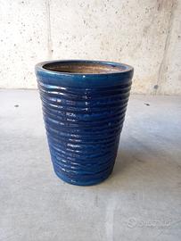Vaso per piante smaltato blu marine, nuovo ottimo per esterno terrazzo e interno casa. Bellissimo!
