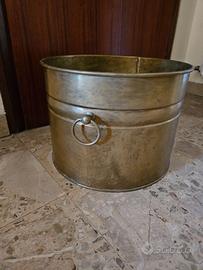 Vaso/porta fiori o contenitore legna con manici extra large in ottone.
