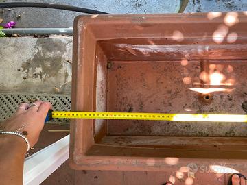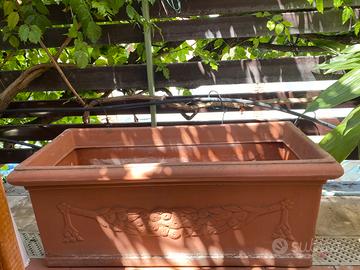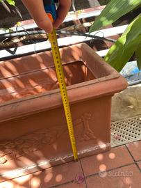 Vendo vaso rettangolare di plastica con decorazioni per piante da esterno
