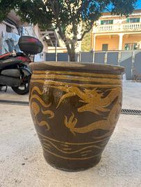 vaso d'acqua tradizionale Ryū Mizubachi risalente agli anni '20 in Giappone, è in ceramica smaltata decorata con un drago stilizzato. Utilizzati originariamente per contenere acqua, piante o pesci, questo vaso è consideratio oggetto d'arte e antiquariato. La decorazione in stile Meiji, presenta un drago, simbolo di potenza.