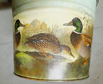 Vaso secchio in metallo vintage, decoupage a tema Countryside papere. Diametro apertura 25,5 Diametro base 21 Altezza 21