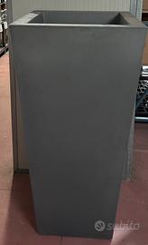 È un vaso grigio a base quadrata in materiale plastico firmato Serralunga. Altezza cm. 150 Lunghezza cm. 74 Profondità cm. 74 Interno lunghezza e profondità cm. 57 Apertura per inserire vaso diametro cm. 46.